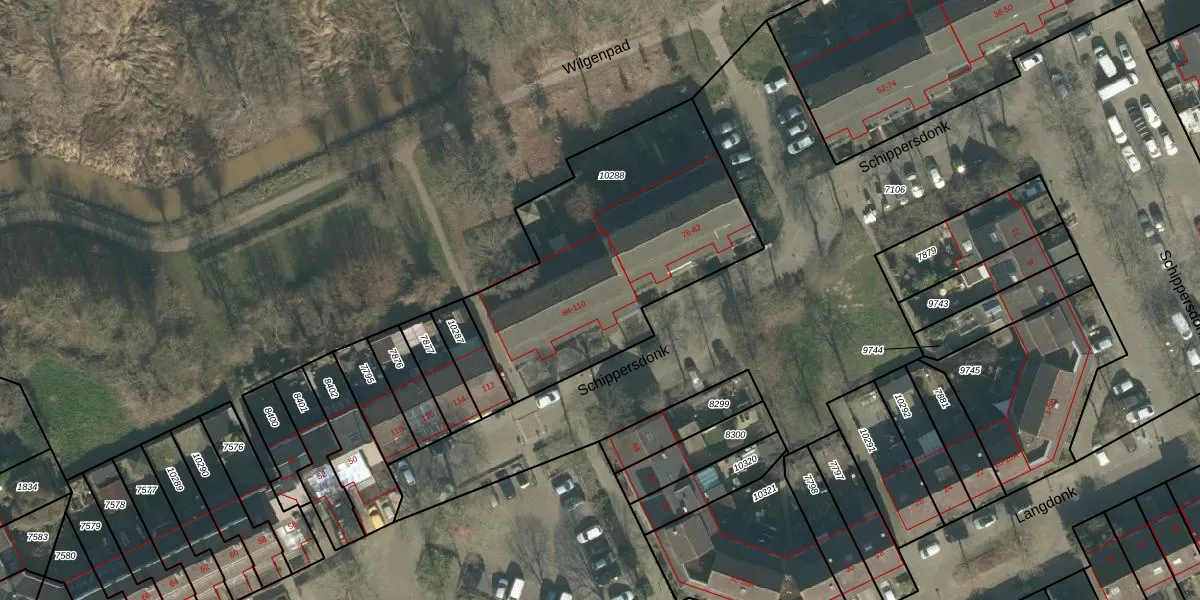 Schippersdonk 90 is gelegen op kadastraal perceel BDA00H10288. Deze kadastrale aanduiding is uniek en wordt gebruikt door het Kadaster om eigendomsrechten en andere zakelijke rechten vast te leggen. Het perceel maakt onderdeel uit van de kadastrale gemeente Breda.