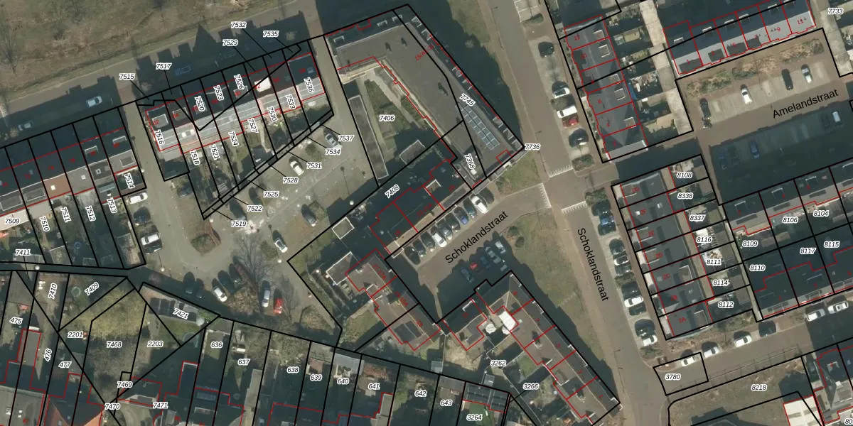 Het perceel waarop Schoklandstraat 21 staat heeft een oppervlakte van 898 m². Dit is een groot perceel. De perceeloppervlakte wordt geregistreerd door het Kadaster. Gedetailleerde informatie over de maten van dit perceel kunt u vinden in het rapport Kadastrale kaart met maatvoering van Schoklandstraat 21.