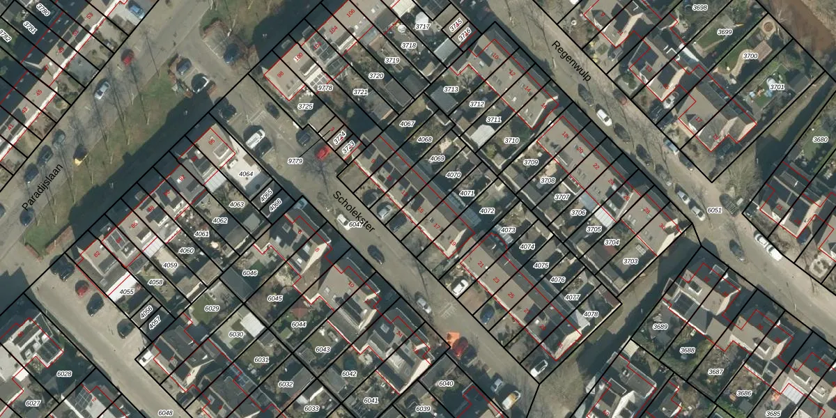 Gebruik de zoekbalk of klik op een perceel voor informatie over de adressen binnen dit perceel.