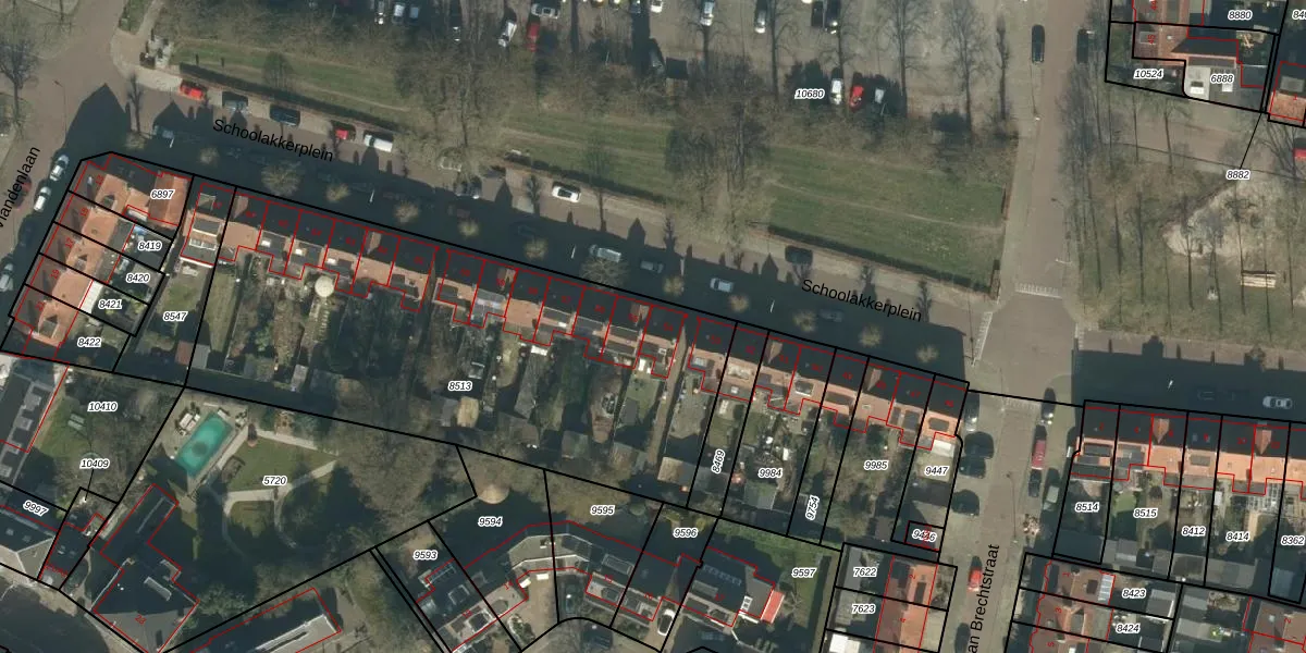 Het perceel waarop Schoolakkerplein 54 staat heeft een oppervlakte van 2395 m². Dit is een zeer groot perceel. De perceeloppervlakte wordt geregistreerd door het Kadaster. Gedetailleerde informatie over de maten van dit perceel kunt u vinden in het rapport Kadastrale kaart met maatvoering van Schoolakkerplein 54.