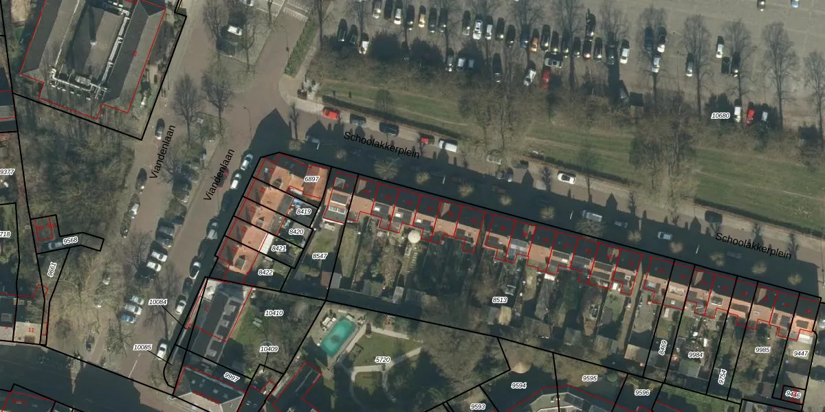 Het perceel waarop Schoolakkerplein 64 staat heeft een oppervlakte van 2395 m². Dit is een zeer groot perceel. De perceeloppervlakte wordt geregistreerd door het Kadaster. Gedetailleerde informatie over de maten van dit perceel kunt u vinden in het rapport Kadastrale kaart met maatvoering van Schoolakkerplein 64.