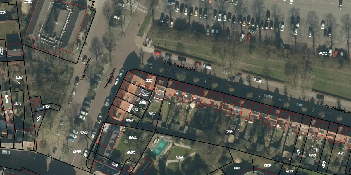 Het perceel waarop Schoolakkerplein 66 staat heeft een oppervlakte van 2395 m². Dit is een zeer groot perceel. De perceeloppervlakte wordt geregistreerd door het Kadaster. Gedetailleerde informatie over de maten van dit perceel kunt u vinden in het rapport Kadastrale kaart met maatvoering van Schoolakkerplein 66.