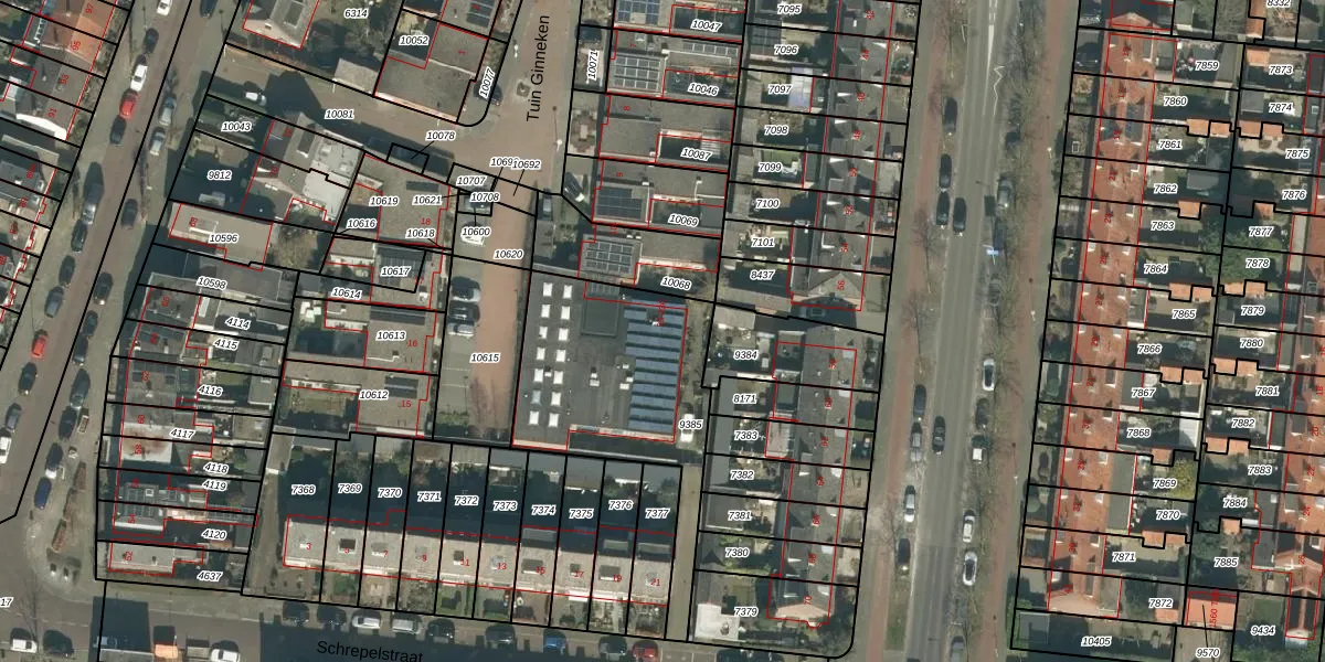 Schrepelstraat 23 is gelegen op kadastraal perceel GNK02I9385. Deze kadastrale aanduiding is uniek en wordt gebruikt door het Kadaster om eigendomsrechten en andere zakelijke rechten vast te leggen. Het perceel maakt onderdeel uit van de kadastrale gemeente Ginneken.
