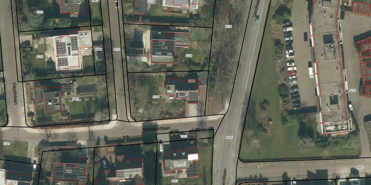Gebruik de zoekbalk of klik op een perceel voor informatie over de adressen binnen dit perceel.
