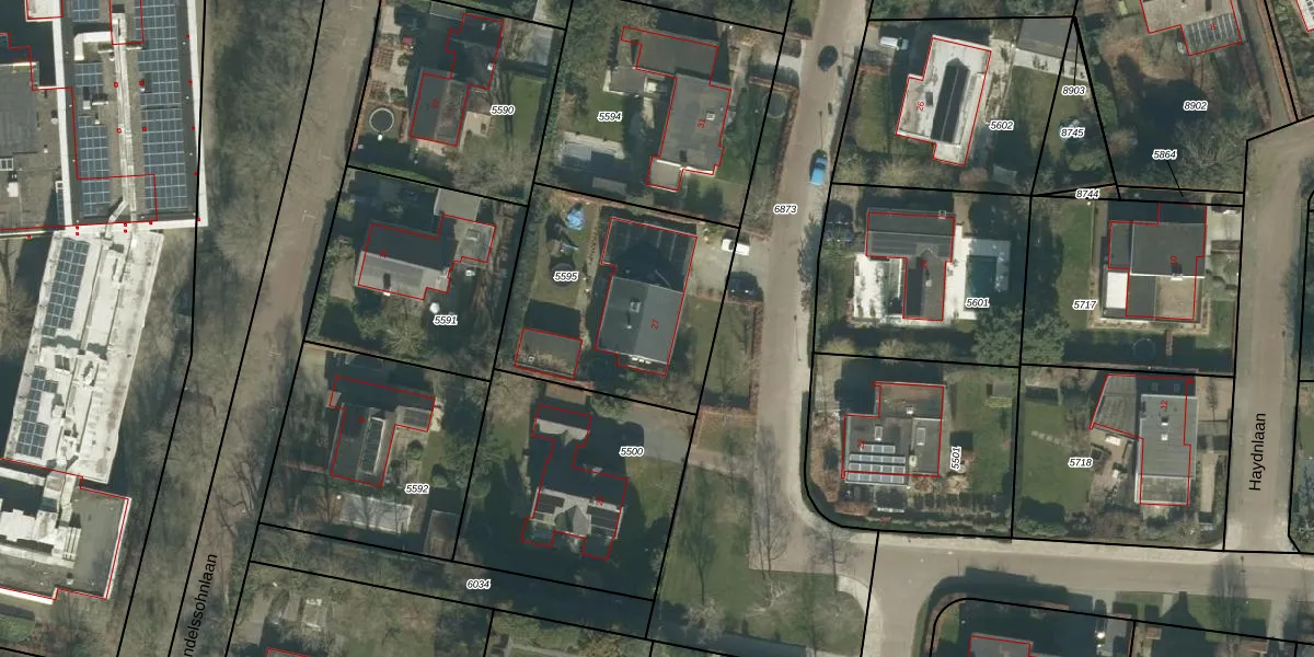 Gebruik de zoekbalk of klik op een perceel voor informatie over de adressen binnen dit perceel.