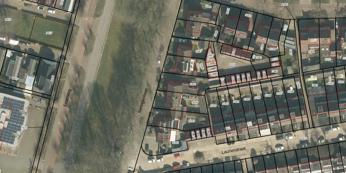 Seringenlaan 32 is gelegen op kadastraal perceel BDA00E5462. Deze kadastrale aanduiding is uniek en wordt gebruikt door het Kadaster om eigendomsrechten en andere zakelijke rechten vast te leggen. Het perceel maakt onderdeel uit van de kadastrale gemeente Breda.
