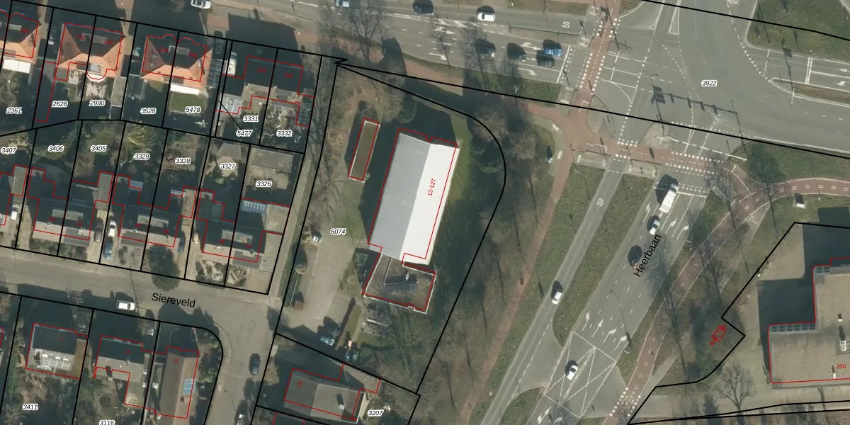 Het perceel waarop Siereveld 12-G staat heeft een oppervlakte van 2624 m². Dit is een zeer groot perceel. De perceeloppervlakte wordt geregistreerd door het Kadaster. Gedetailleerde informatie over de maten van dit perceel kunt u vinden in het rapport Kadastrale kaart met maatvoering van Siereveld 12-G.