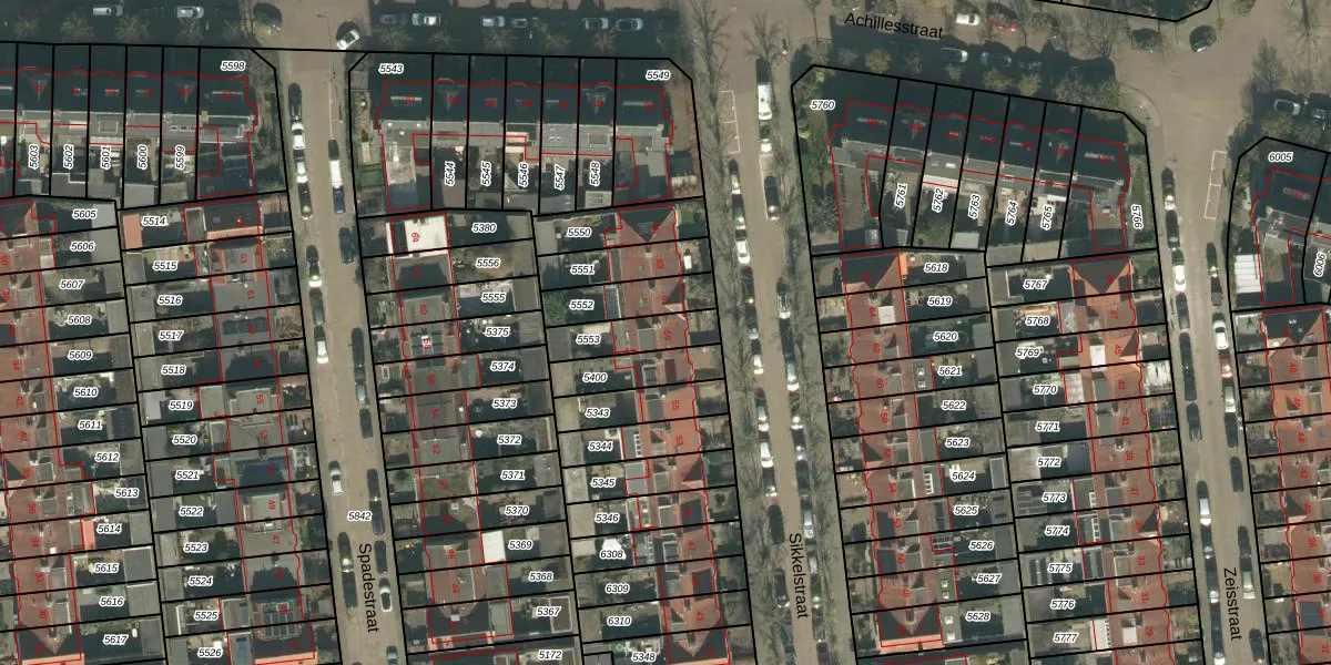 Gebruik de zoekbalk of klik op een perceel voor informatie over de adressen binnen dit perceel.