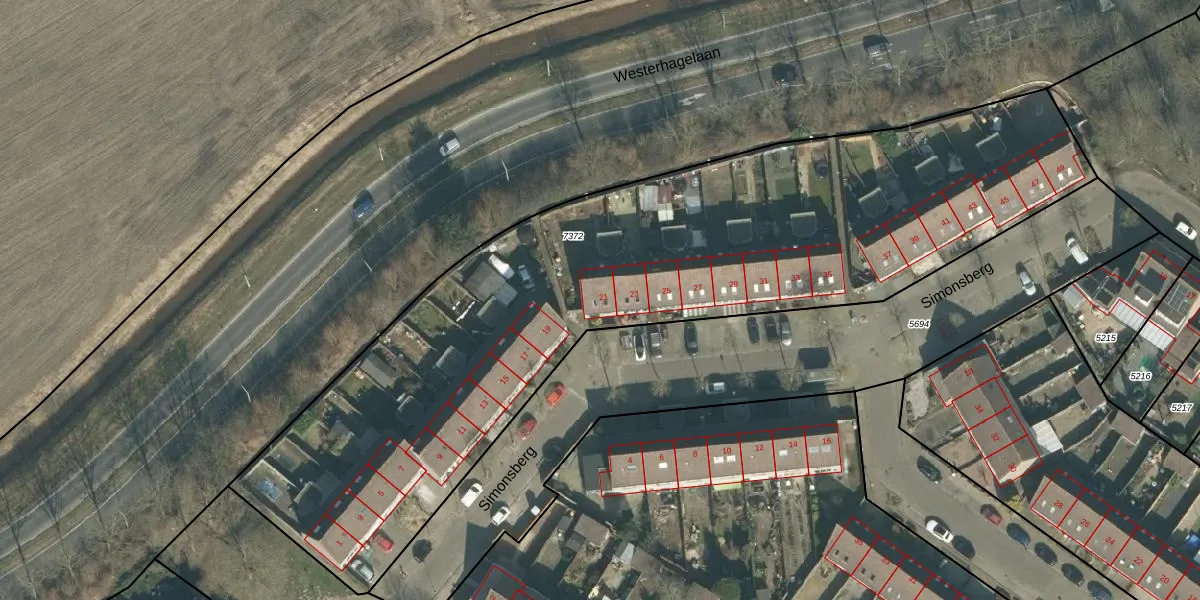 Het perceel waarop Simonsberg 21 staat heeft een oppervlakte van 3784 m². Dit is een zeer groot perceel. De perceeloppervlakte wordt geregistreerd door het Kadaster. Gedetailleerde informatie over de maten van dit perceel kunt u vinden in het rapport Kadastrale kaart met maatvoering van Simonsberg 21.