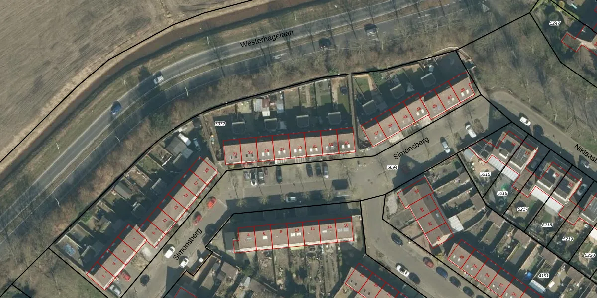Het perceel waarop Simonsberg 29 staat heeft een oppervlakte van 3784 m². Dit is een zeer groot perceel. De perceeloppervlakte wordt geregistreerd door het Kadaster. Gedetailleerde informatie over de maten van dit perceel kunt u vinden in het rapport Kadastrale kaart met maatvoering van Simonsberg 29.