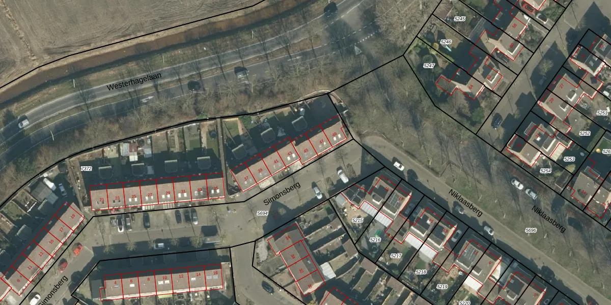 Het perceel waarop Simonsberg 45 staat heeft een oppervlakte van 3784 m². Dit is een zeer groot perceel. De perceeloppervlakte wordt geregistreerd door het Kadaster. Gedetailleerde informatie over de maten van dit perceel kunt u vinden in het rapport Kadastrale kaart met maatvoering van Simonsberg 45.
