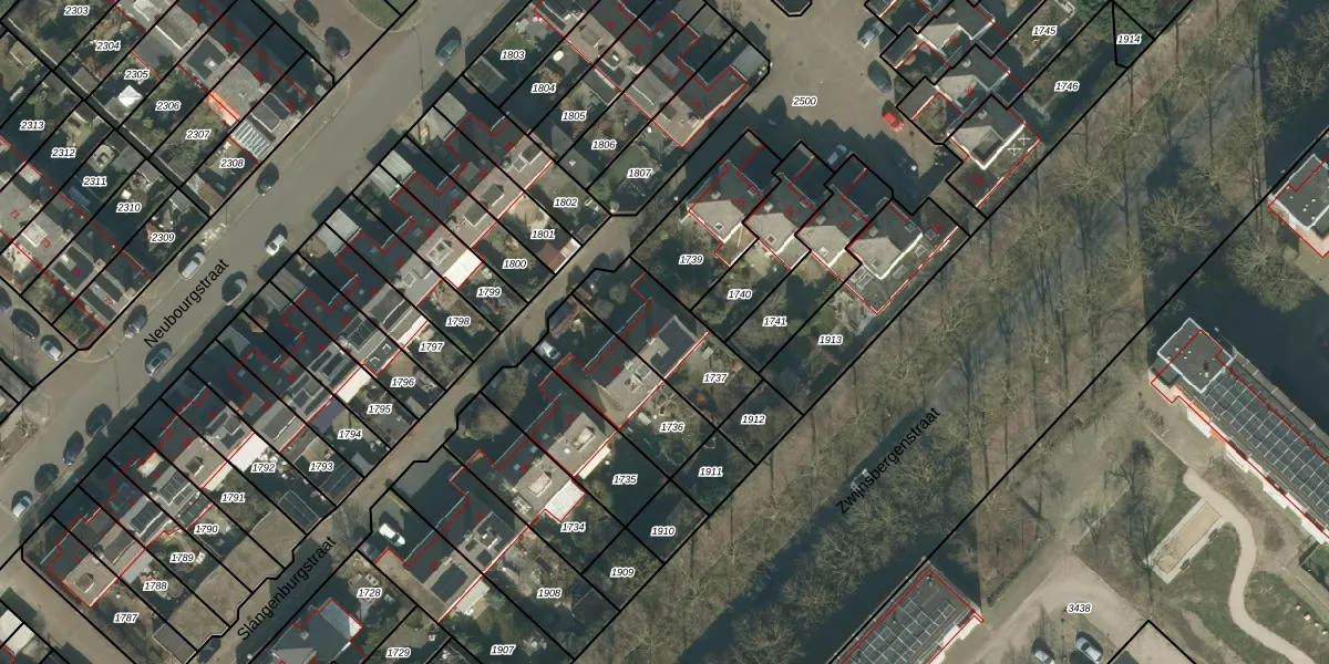 Gebruik de zoekbalk of klik op een perceel voor informatie over de adressen binnen dit perceel.