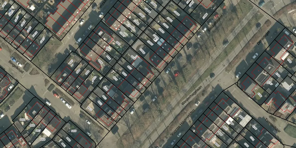 Gebruik de zoekbalk of klik op een perceel voor informatie over de adressen binnen dit perceel.