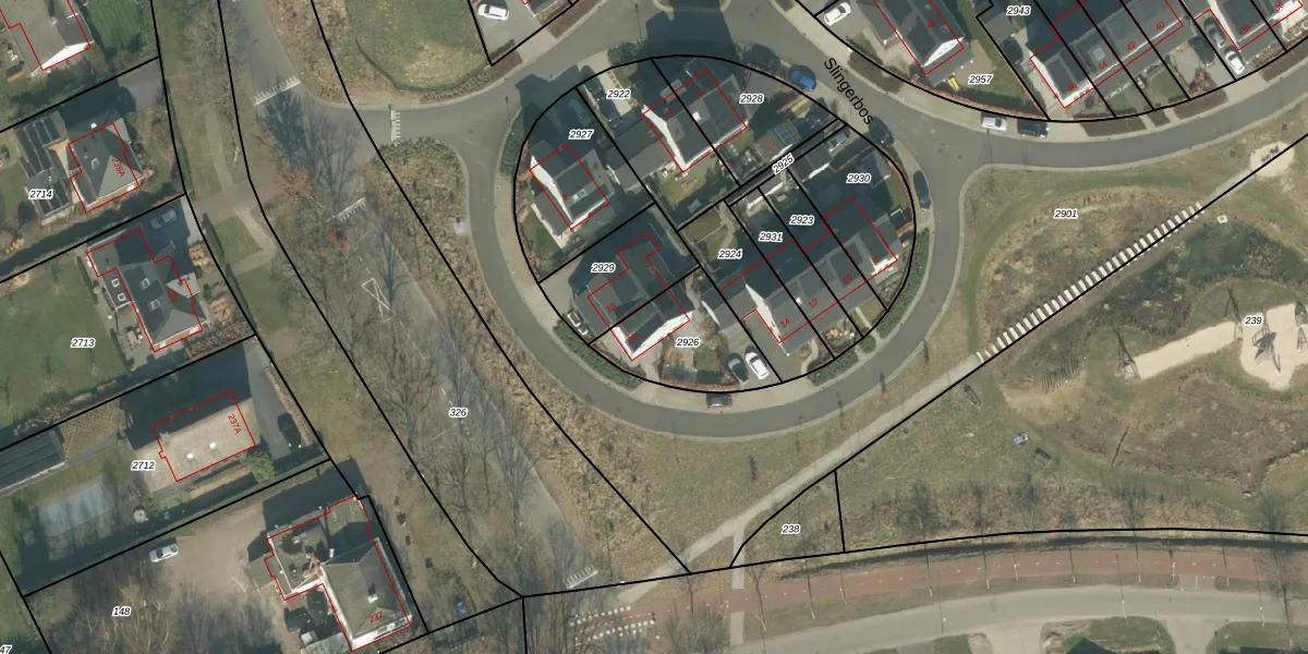 Het perceel waarop Slingerbos 16 staat heeft een oppervlakte van 312 m². Dit is een groot perceel. De perceeloppervlakte wordt geregistreerd door het Kadaster. Gedetailleerde informatie over de maten van dit perceel kunt u vinden in het rapport Kadastrale kaart met maatvoering van Slingerbos 16.