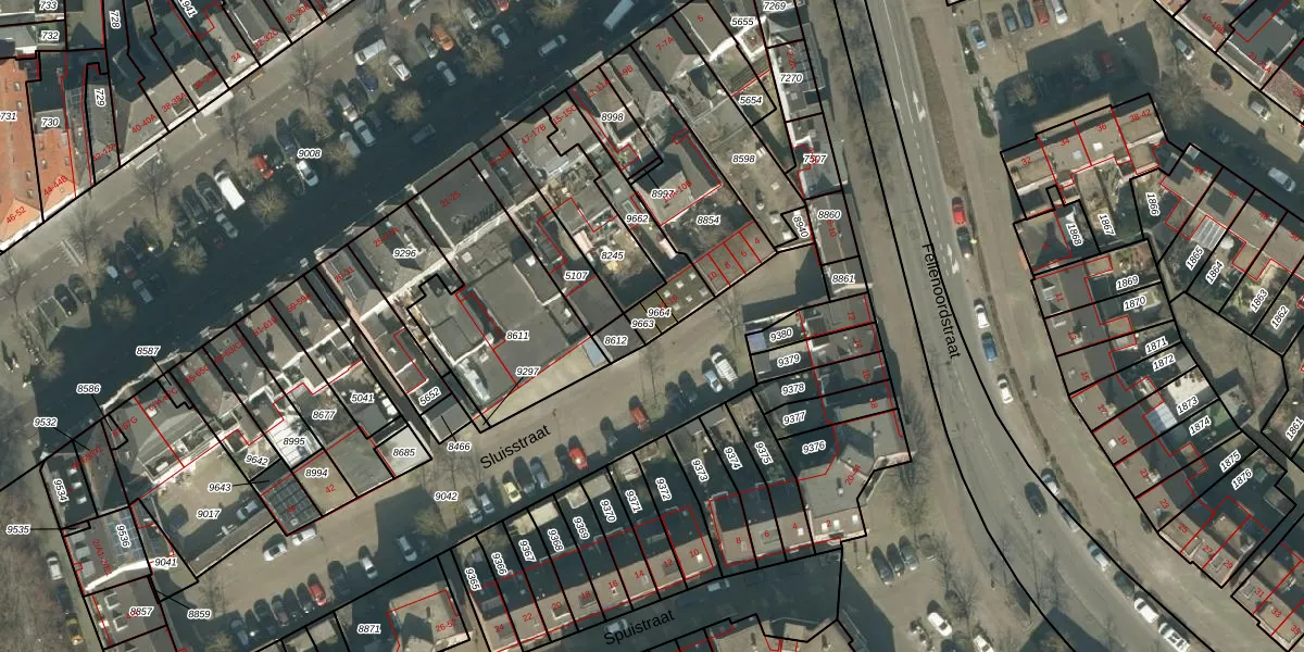 Het perceel waarop Sluisstraat 16 staat heeft een oppervlakte van 18 m². Dit is een klein perceel. De perceeloppervlakte wordt geregistreerd door het Kadaster. Gedetailleerde informatie over de maten van dit perceel kunt u vinden in het rapport Kadastrale kaart met maatvoering van Sluisstraat 16.