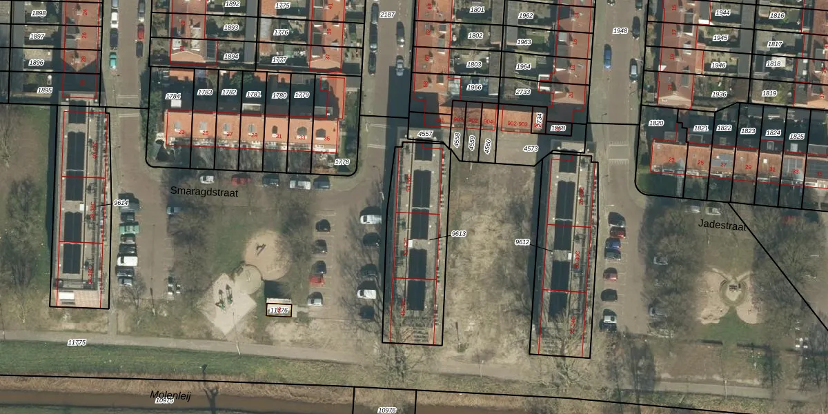 Smaragdstraat 54-A is gelegen op kadastraal perceel BDA00D9613. Deze kadastrale aanduiding is uniek en wordt gebruikt door het Kadaster om eigendomsrechten en andere zakelijke rechten vast te leggen. Het perceel maakt onderdeel uit van de kadastrale gemeente Breda.