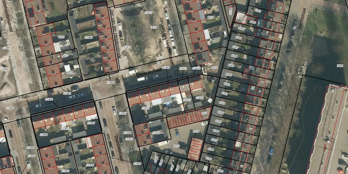 Snelliusstraat 34 is gelegen op kadastraal perceel BDA00D11910. Deze kadastrale aanduiding is uniek en wordt gebruikt door het Kadaster om eigendomsrechten en andere zakelijke rechten vast te leggen. Het perceel maakt onderdeel uit van de kadastrale gemeente Breda.