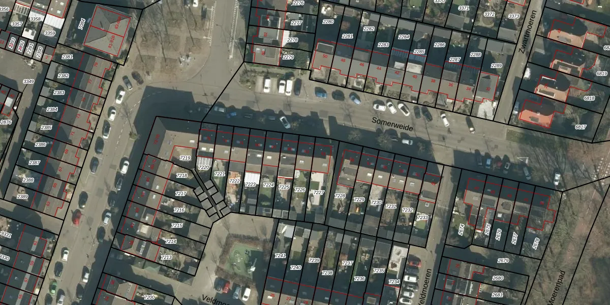 Gebruik de zoekbalk of klik op een perceel voor informatie over de adressen binnen dit perceel.
