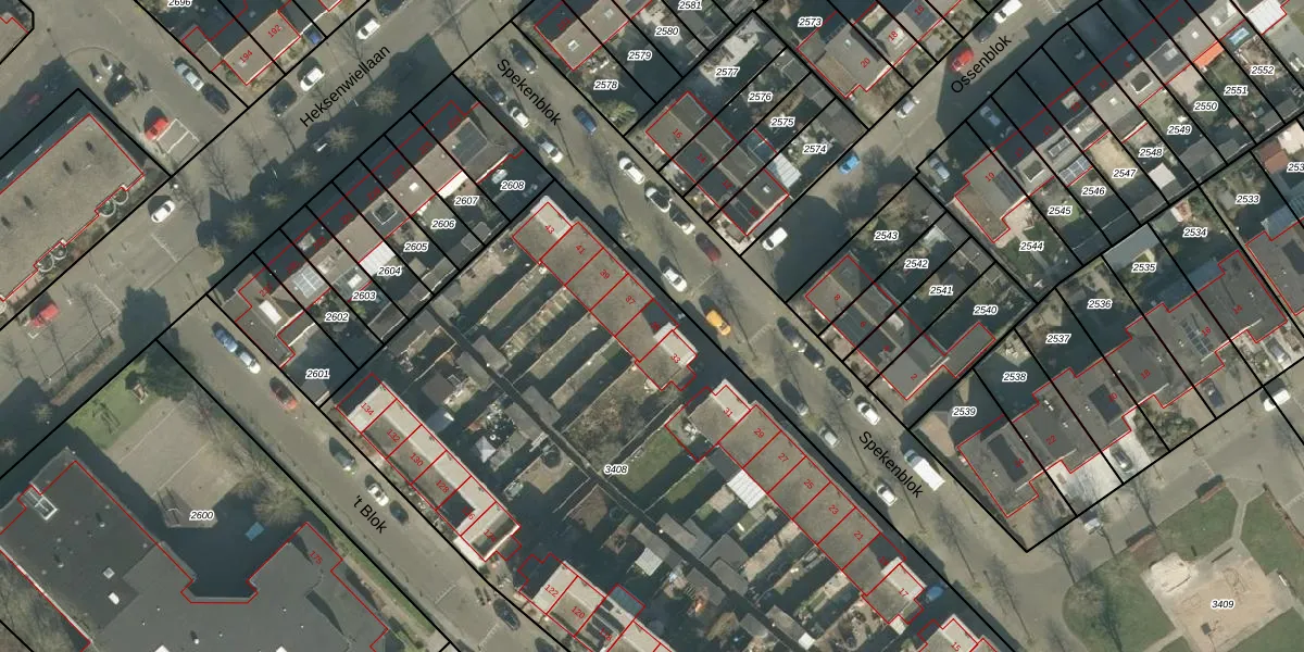 Het perceel waarop Spekenblok 35 staat heeft een oppervlakte van 6550 m². Dit is een zeer groot perceel. De perceeloppervlakte wordt geregistreerd door het Kadaster. Gedetailleerde informatie over de maten van dit perceel kunt u vinden in het rapport Kadastrale kaart met maatvoering van Spekenblok 35.