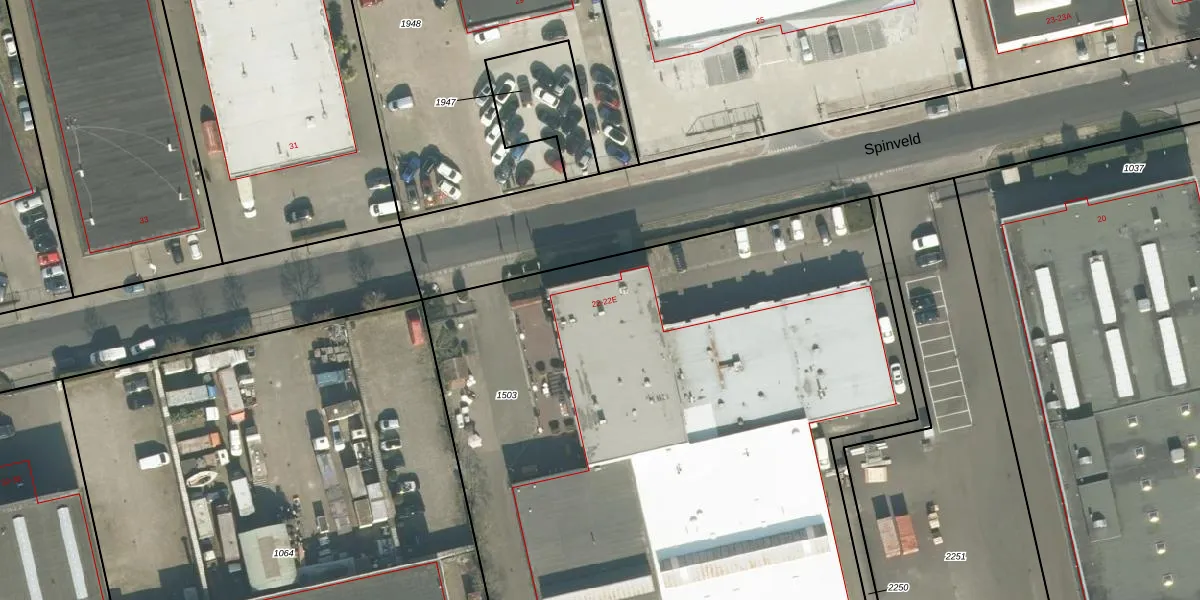Spinveld 22 is gelegen op kadastraal perceel BDA00F1503. Deze kadastrale aanduiding is uniek en wordt gebruikt door het Kadaster om eigendomsrechten en andere zakelijke rechten vast te leggen. Het perceel maakt onderdeel uit van de kadastrale gemeente Breda.