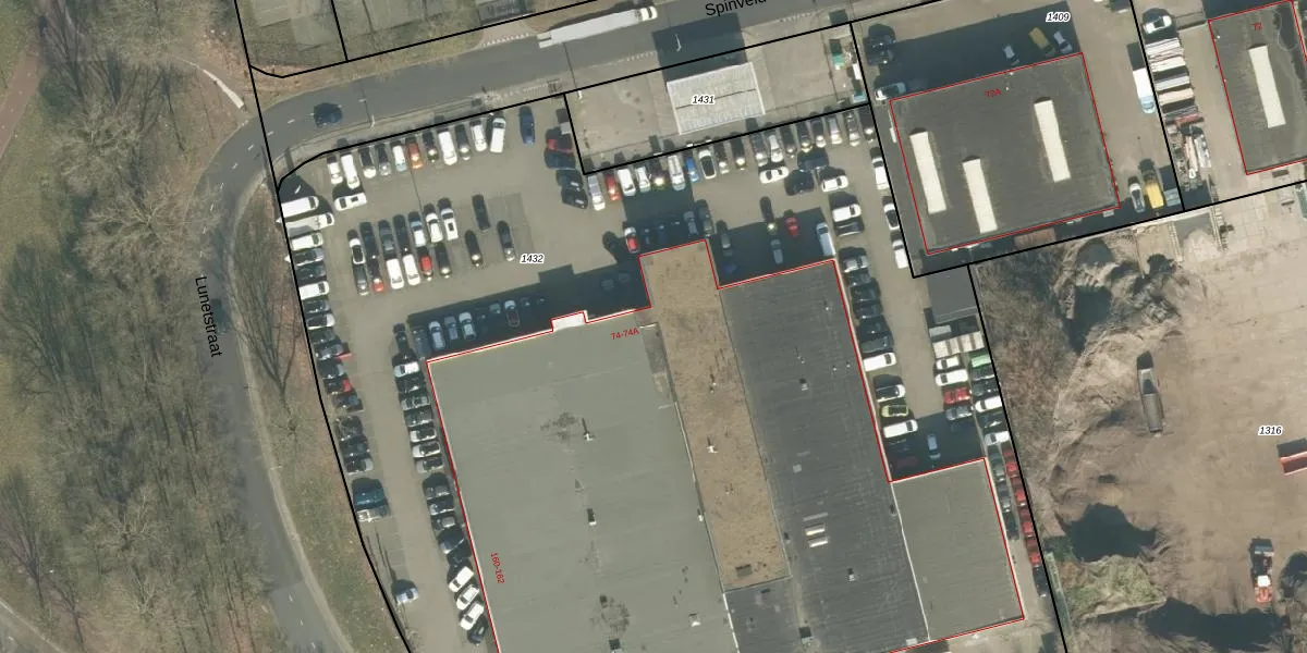Spinveld 74-A is gelegen op kadastraal perceel BDA00F1432. Deze kadastrale aanduiding is uniek en wordt gebruikt door het Kadaster om eigendomsrechten en andere zakelijke rechten vast te leggen. Het perceel maakt onderdeel uit van de kadastrale gemeente Breda.