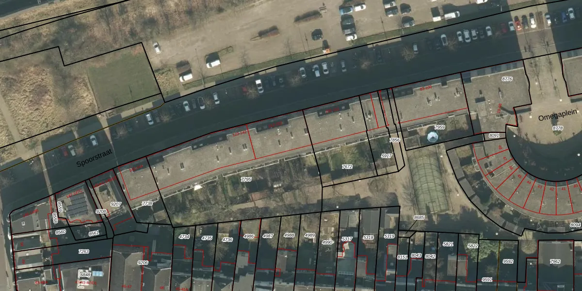 Het perceel waarop Spoorstraat 120 staat heeft een oppervlakte van 1722 m². Dit is een zeer groot perceel. De perceeloppervlakte wordt geregistreerd door het Kadaster. Gedetailleerde informatie over de maten van dit perceel kunt u vinden in het rapport Kadastrale kaart met maatvoering van Spoorstraat 120.