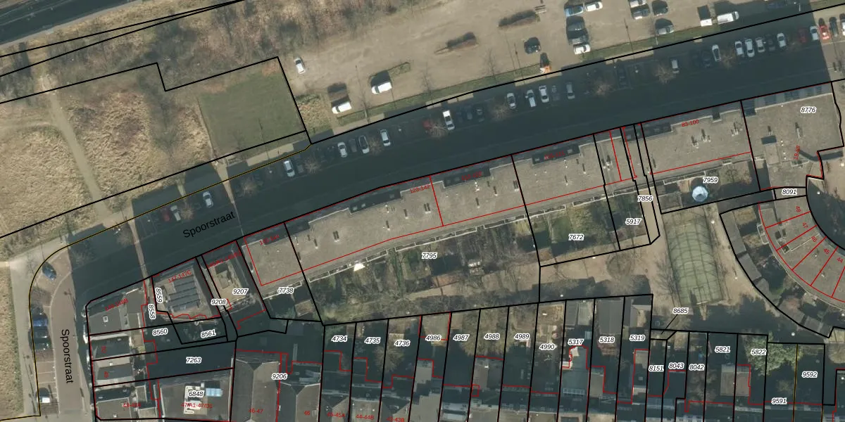 Het perceel waarop Spoorstraat 126 staat heeft een oppervlakte van 1722 m². Dit is een zeer groot perceel. De perceeloppervlakte wordt geregistreerd door het Kadaster. Gedetailleerde informatie over de maten van dit perceel kunt u vinden in het rapport Kadastrale kaart met maatvoering van Spoorstraat 126.