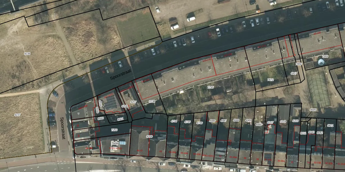 Spoorstraat 141 is gelegen op kadastraal perceel BDA00B7795. Deze kadastrale aanduiding is uniek en wordt gebruikt door het Kadaster om eigendomsrechten en andere zakelijke rechten vast te leggen. Het perceel maakt onderdeel uit van de kadastrale gemeente Breda.