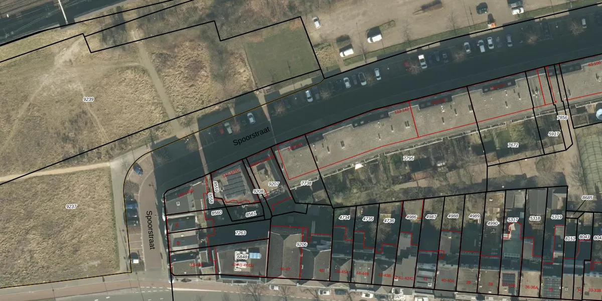 Spoorstraat 143 is gelegen op kadastraal perceel BDA00B7738. Deze kadastrale aanduiding is uniek en wordt gebruikt door het Kadaster om eigendomsrechten en andere zakelijke rechten vast te leggen. Het perceel maakt onderdeel uit van de kadastrale gemeente Breda.