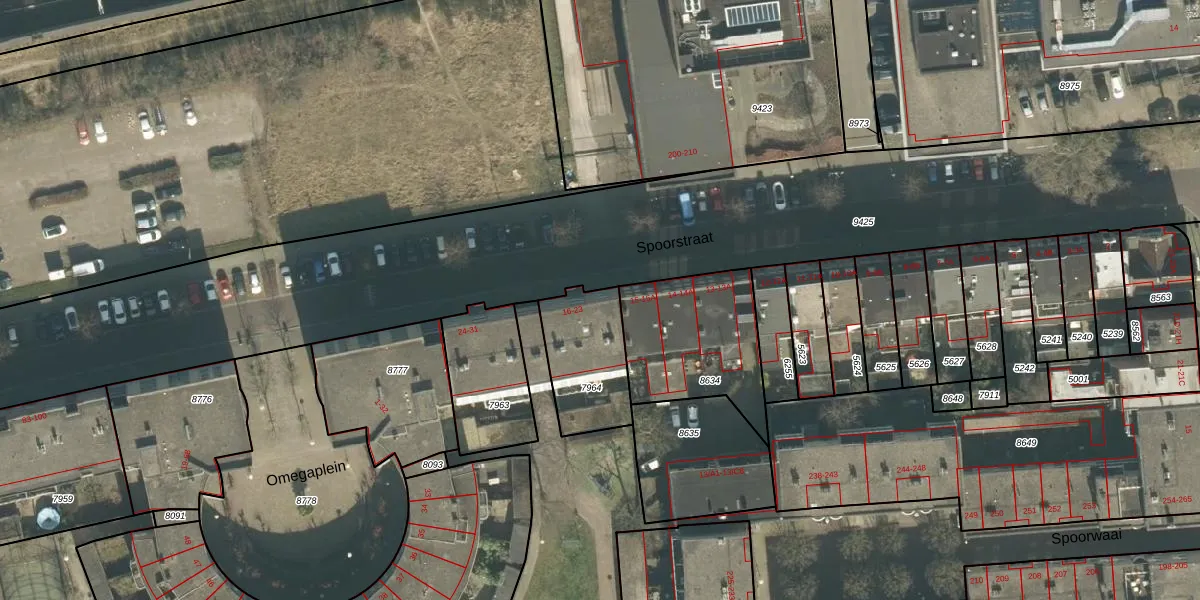 Spoorstraat 16 is gelegen op kadastraal perceel BDA00B7964. Deze kadastrale aanduiding is uniek en wordt gebruikt door het Kadaster om eigendomsrechten en andere zakelijke rechten vast te leggen. Het perceel maakt onderdeel uit van de kadastrale gemeente Breda.