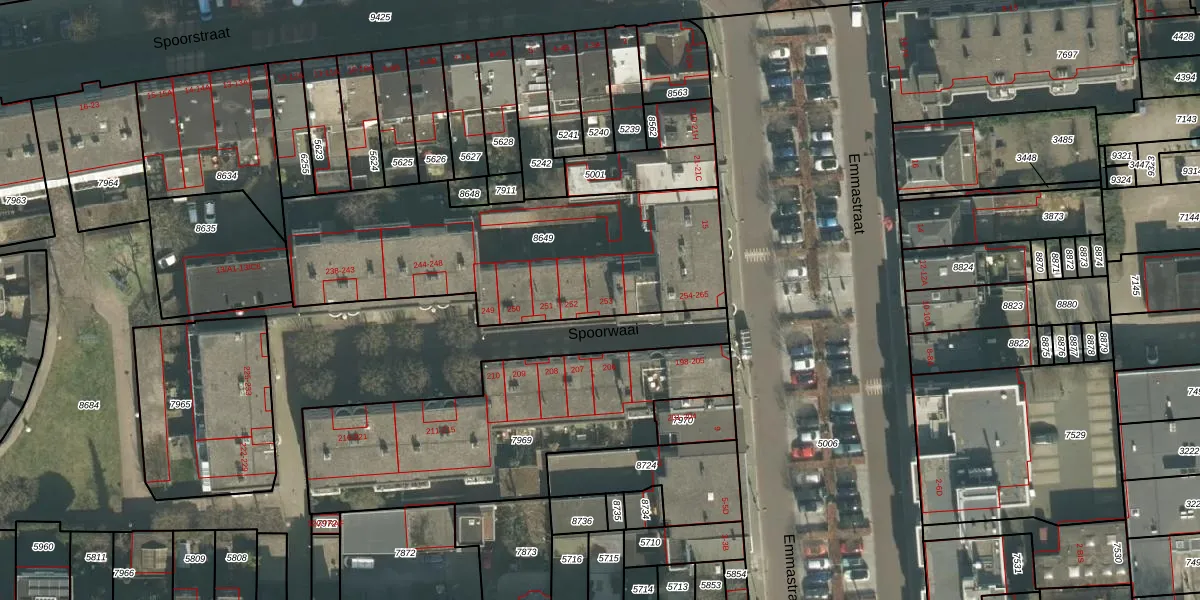 Spoorwaai 253 is gelegen op kadastraal perceel BDA00B8649. Deze kadastrale aanduiding is uniek en wordt gebruikt door het Kadaster om eigendomsrechten en andere zakelijke rechten vast te leggen. Het perceel maakt onderdeel uit van de kadastrale gemeente Breda.