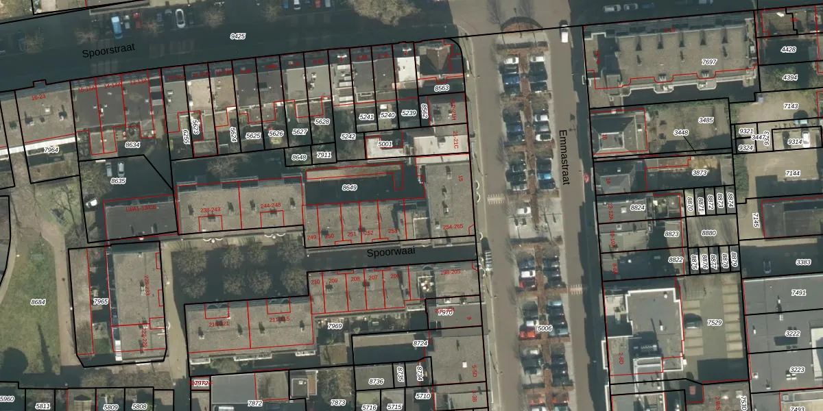 Spoorwaai 262 is gelegen op kadastraal perceel BDA00B8649. Deze kadastrale aanduiding is uniek en wordt gebruikt door het Kadaster om eigendomsrechten en andere zakelijke rechten vast te leggen. Het perceel maakt onderdeel uit van de kadastrale gemeente Breda.