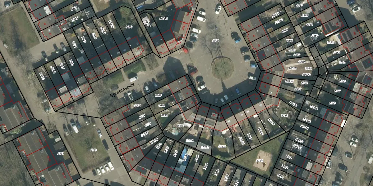 Sporenweide 8 is gelegen op kadastraal perceel BDA00H8870. Deze kadastrale aanduiding is uniek en wordt gebruikt door het Kadaster om eigendomsrechten en andere zakelijke rechten vast te leggen. Het perceel maakt onderdeel uit van de kadastrale gemeente Breda.