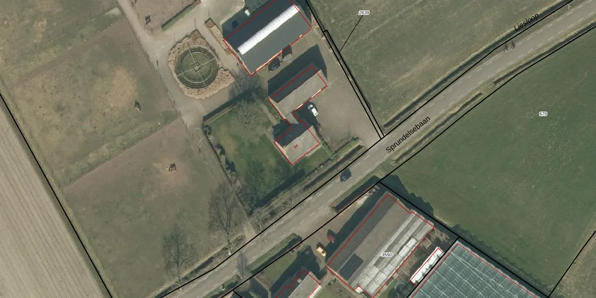 Het perceel waarop Sprundelsebaan 94 staat heeft een oppervlakte van 2,3 ha. Dit is een zeer groot perceel. De perceeloppervlakte wordt geregistreerd door het Kadaster. Gedetailleerde informatie over de maten van dit perceel kunt u vinden in het rapport Kadastrale kaart met maatvoering van Sprundelsebaan 94.