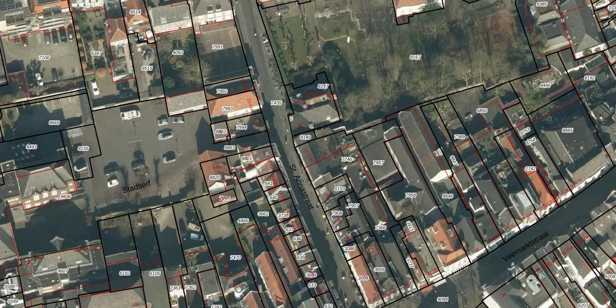 St. Annastraat 12 is gelegen op kadastraal perceel BDA00B7746. Deze kadastrale aanduiding is uniek en wordt gebruikt door het Kadaster om eigendomsrechten en andere zakelijke rechten vast te leggen. Het perceel maakt onderdeel uit van de kadastrale gemeente Breda.