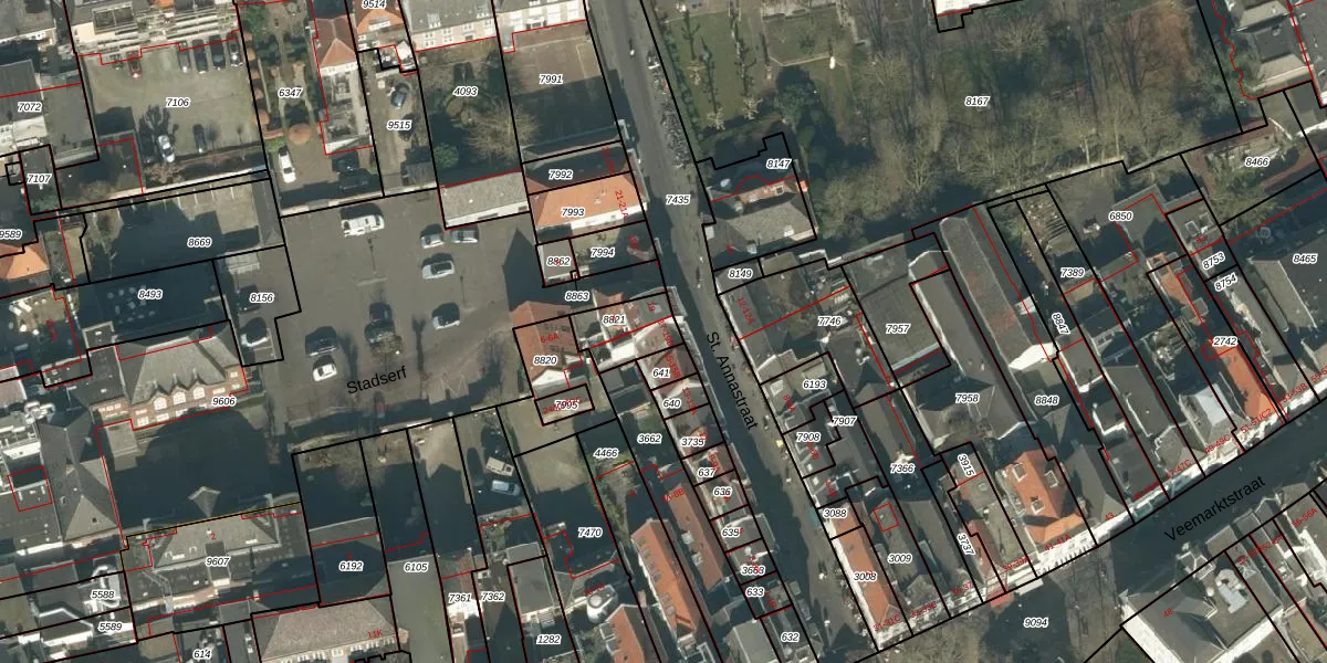 St. Annastraat 17 is gelegen op kadastraal perceel BDA00B8821. Deze kadastrale aanduiding is uniek en wordt gebruikt door het Kadaster om eigendomsrechten en andere zakelijke rechten vast te leggen. Het perceel maakt onderdeel uit van de kadastrale gemeente Breda.