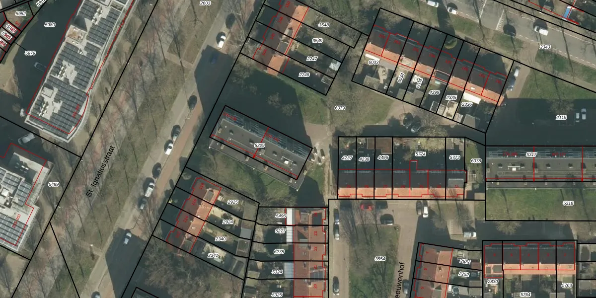 Het perceel waarop St. Ignatiusstraat 140 staat heeft een oppervlakte van 387 m². Dit is een groot perceel. De perceeloppervlakte wordt geregistreerd door het Kadaster. Gedetailleerde informatie over de maten van dit perceel kunt u vinden in het rapport Kadastrale kaart met maatvoering van St. Ignatiusstraat 140.