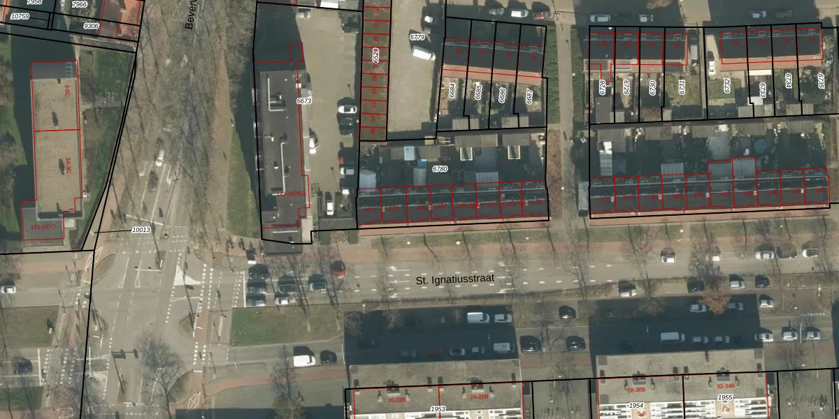 Het perceel waarop St. Ignatiusstraat 165 staat heeft een oppervlakte van 976 m². Dit is een groot perceel. De perceeloppervlakte wordt geregistreerd door het Kadaster. Gedetailleerde informatie over de maten van dit perceel kunt u vinden in het rapport Kadastrale kaart met maatvoering van St. Ignatiusstraat 165.