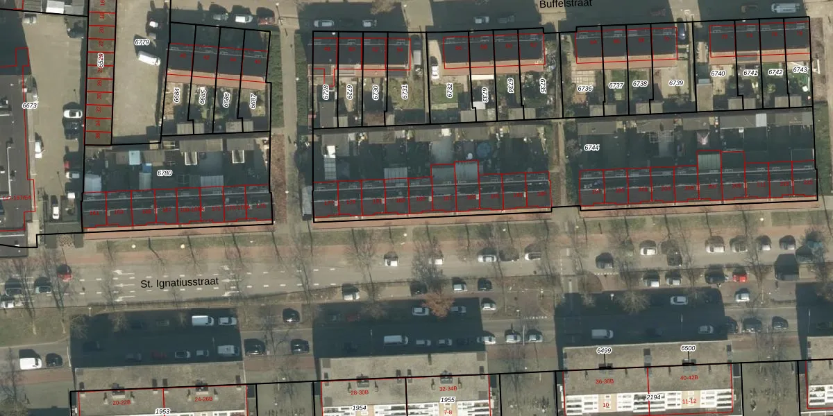 St. Ignatiusstraat 185 is gelegen op kadastraal perceel GNK02A6744. Deze kadastrale aanduiding is uniek en wordt gebruikt door het Kadaster om eigendomsrechten en andere zakelijke rechten vast te leggen. Het perceel maakt onderdeel uit van de kadastrale gemeente Ginneken.