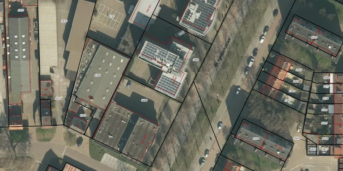 St. Ignatiusstraat 259 is gelegen op kadastraal perceel GNK02A5489. Deze kadastrale aanduiding is uniek en wordt gebruikt door het Kadaster om eigendomsrechten en andere zakelijke rechten vast te leggen. Het perceel maakt onderdeel uit van de kadastrale gemeente Ginneken.
