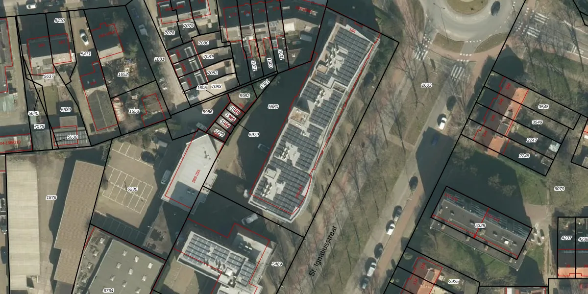 St. Ignatiusstraat 281 is gelegen op kadastraal perceel GNK02A5980. Deze kadastrale aanduiding is uniek en wordt gebruikt door het Kadaster om eigendomsrechten en andere zakelijke rechten vast te leggen. Het perceel maakt onderdeel uit van de kadastrale gemeente Ginneken.