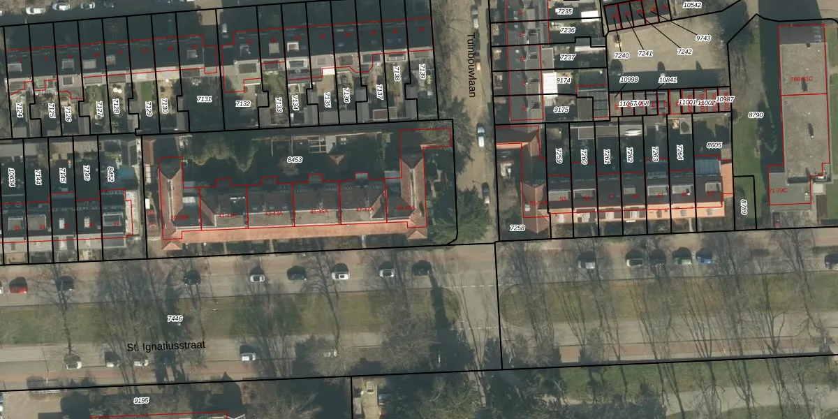 Het perceel waarop St. Ignatiusstraat 49 staat heeft een oppervlakte van 2211 m². Dit is een zeer groot perceel. De perceeloppervlakte wordt geregistreerd door het Kadaster. Gedetailleerde informatie over de maten van dit perceel kunt u vinden in het rapport Kadastrale kaart met maatvoering van St. Ignatiusstraat 49.