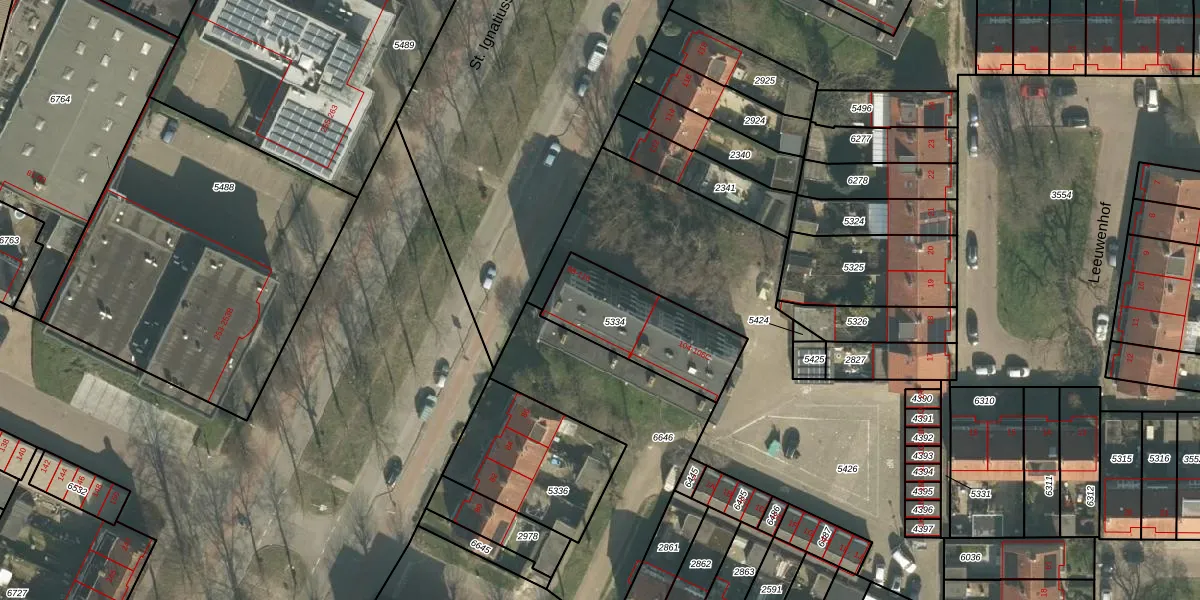 Het perceel waarop St. Ignatiusstraat 94-A staat heeft een oppervlakte van 387 m². Dit is een groot perceel. De perceeloppervlakte wordt geregistreerd door het Kadaster. Gedetailleerde informatie over de maten van dit perceel kunt u vinden in het rapport Kadastrale kaart met maatvoering van St. Ignatiusstraat 94-A.