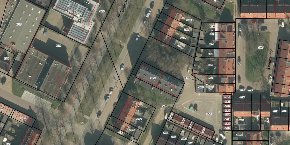 Het perceel waarop St. Ignatiusstraat 98 staat heeft een oppervlakte van 387 m². Dit is een groot perceel. De perceeloppervlakte wordt geregistreerd door het Kadaster. Gedetailleerde informatie over de maten van dit perceel kunt u vinden in het rapport Kadastrale kaart met maatvoering van St. Ignatiusstraat 98.
