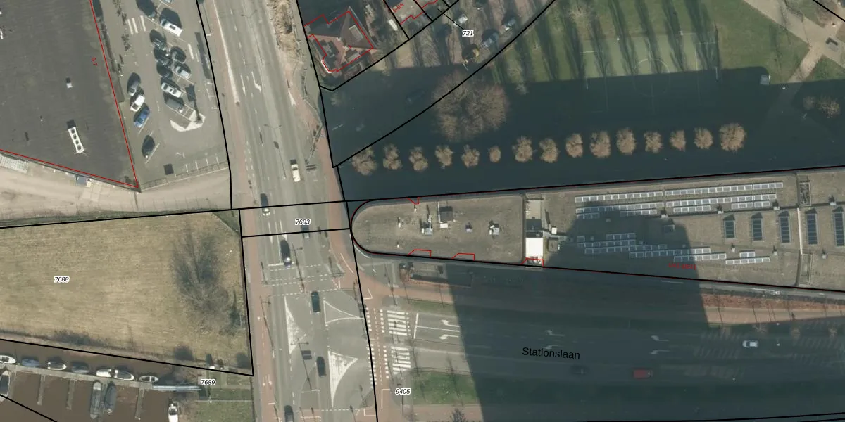 Stationslaan 1-E2 is gelegen op kadastraal perceel BDA00B9001. Deze kadastrale aanduiding is uniek en wordt gebruikt door het Kadaster om eigendomsrechten en andere zakelijke rechten vast te leggen. Het perceel maakt onderdeel uit van de kadastrale gemeente Breda.