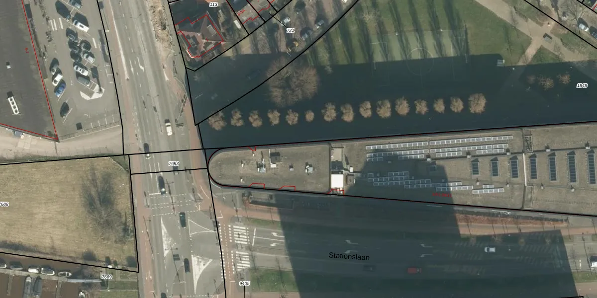 Het perceel waarop Stationslaan 1-F4 staat heeft een oppervlakte van 5890 m². Dit is een zeer groot perceel. De perceeloppervlakte wordt geregistreerd door het Kadaster. Gedetailleerde informatie over de maten van dit perceel kunt u vinden in het rapport Kadastrale kaart met maatvoering van Stationslaan 1-F4.