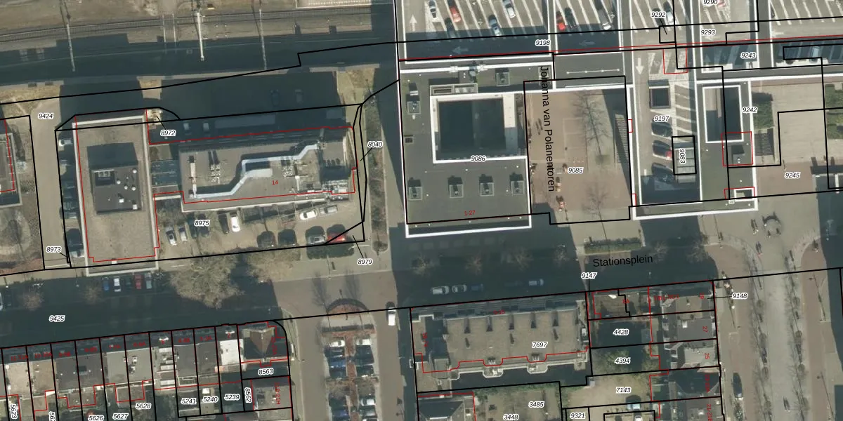 Het perceel waarop Stationsplein 18 staat heeft een oppervlakte van 1180 m². Dit is een zeer groot perceel. De perceeloppervlakte wordt geregistreerd door het Kadaster. Gedetailleerde informatie over de maten van dit perceel kunt u vinden in het rapport Kadastrale kaart met maatvoering van Stationsplein 18.