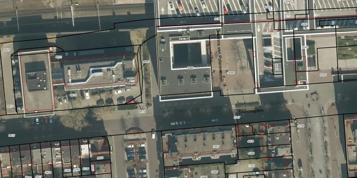 Het perceel waarop Stationsplein 24 staat heeft een oppervlakte van 1180 m². Dit is een zeer groot perceel. De perceeloppervlakte wordt geregistreerd door het Kadaster. Gedetailleerde informatie over de maten van dit perceel kunt u vinden in het rapport Kadastrale kaart met maatvoering van Stationsplein 24.