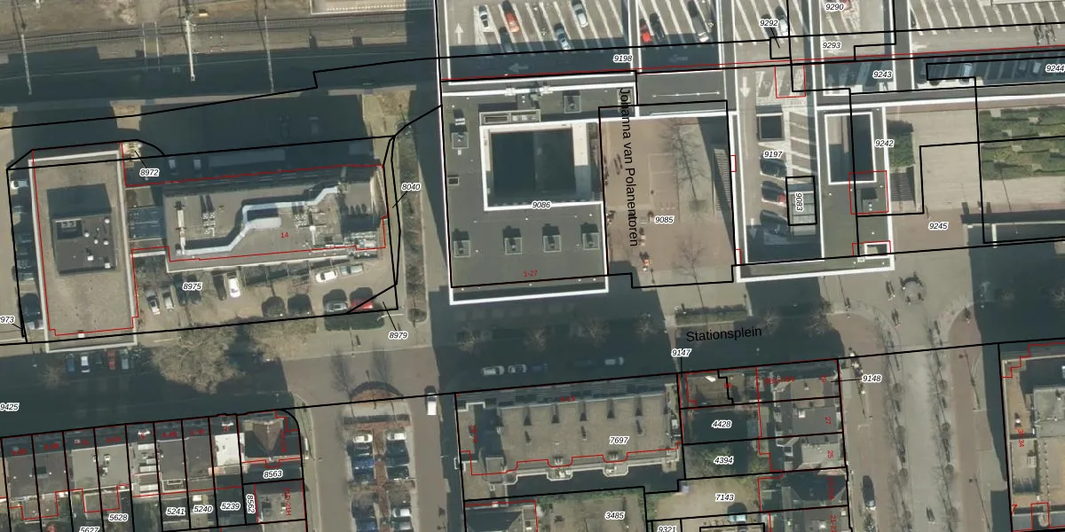 Het perceel waarop Stationsplein 28 staat heeft een oppervlakte van 1180 m². Dit is een zeer groot perceel. De perceeloppervlakte wordt geregistreerd door het Kadaster. Gedetailleerde informatie over de maten van dit perceel kunt u vinden in het rapport Kadastrale kaart met maatvoering van Stationsplein 28.
