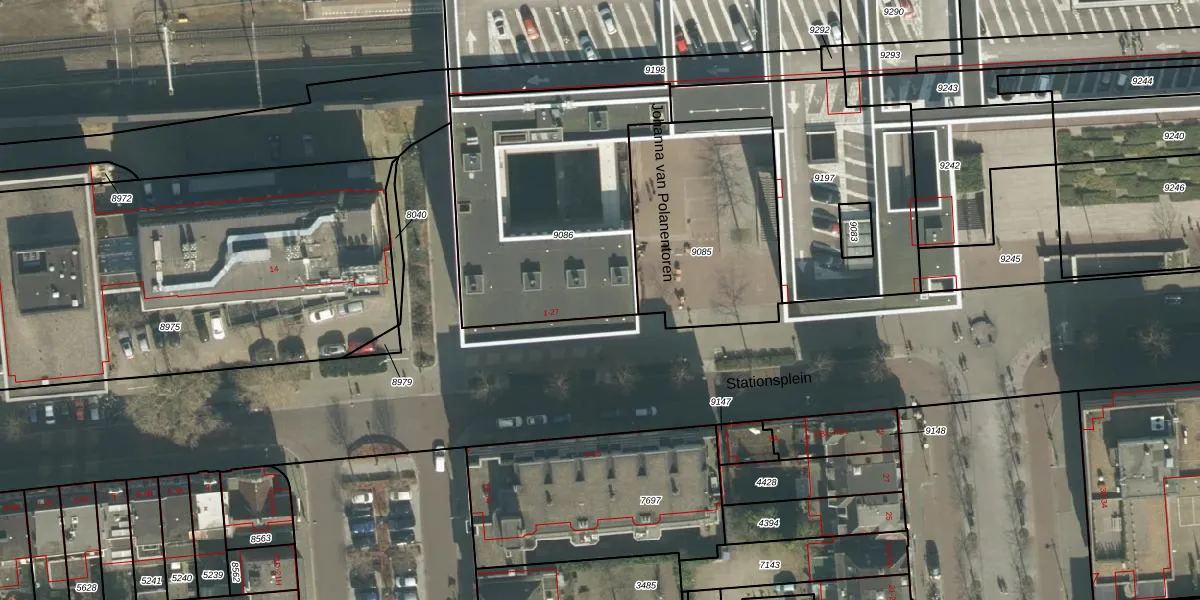 Het perceel waarop Stationsplein 34 staat heeft een oppervlakte van 1180 m². Dit is een zeer groot perceel. De perceeloppervlakte wordt geregistreerd door het Kadaster. Gedetailleerde informatie over de maten van dit perceel kunt u vinden in het rapport Kadastrale kaart met maatvoering van Stationsplein 34.